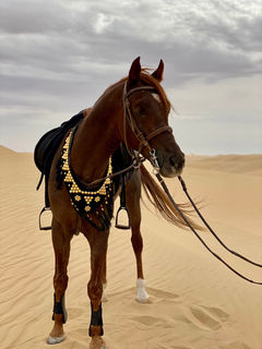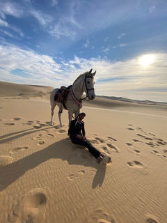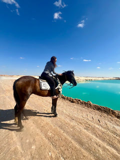 Today you will discover the Great Sand Sea on a horseback. Get ready for a 5-6 hours exhilarating riding adventure. Explore stunning landscapes, and witness the natural beauty of this enchanting place. It is hard to describe the feeling of galloping across the open desert, but you will have the chance to experience this. We just say it here: the ``Yalla`` feeling. When your guide will say this magic word, suddenly the wind rushes past you and you and your horse move swiftly across the endless stretches of sand.